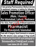 Sales Promotion Officers And Pharmacists Job Opportunity