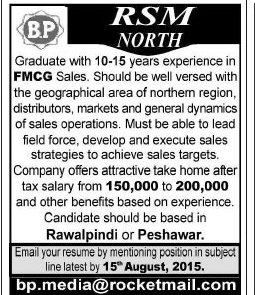 Apply as per details in job advertisement. Login to view further details of how to apply via https://www.jobz.pk online.
