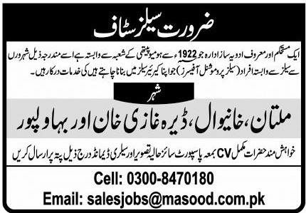Latest Pharmaceutical Company Sales Posts Multan 2025