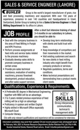 Vacancies in BUHLER Pakistan Advertisement February 2021