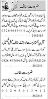 Apply as per details in job advertisement. Login to view further details of how to apply via https://www.jobz.pk online.