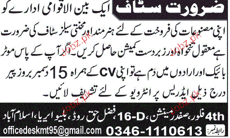 Latest Private Company Sales Posts Islamabad 2025