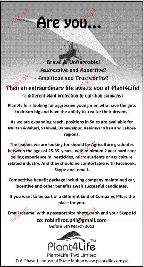 Apply as per details in job advertisement. Login to view further details of how to apply via https://www.jobz.pk online.