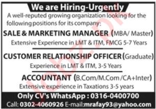 Private Company invites applications for job positions advertised in daily Jang dated 5 January 2025 for following vacancies in Lahore, lahore Punjab Pakistan.