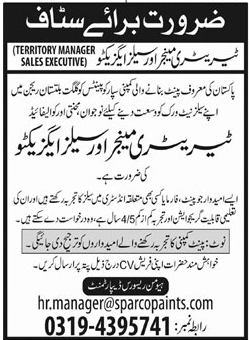 Vacant posts including territory manager and sales executive are announced in Sparco Paints Gilgit, gilgit Gilgit Baltistan Pakistan as per 21 August 2023 advertisement in daily Ausaf Newspaper. Preferred Education is Bachelor and Master etc.