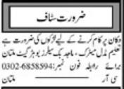 Vacant posts including salesman and sales staff are announced in Shop Multan, multan Punjab Pakistan as per 2 September 2022 advertisement in daily Khabrain Newspaper. Educational qualifications required Matric, Middle and Intermediate etc.