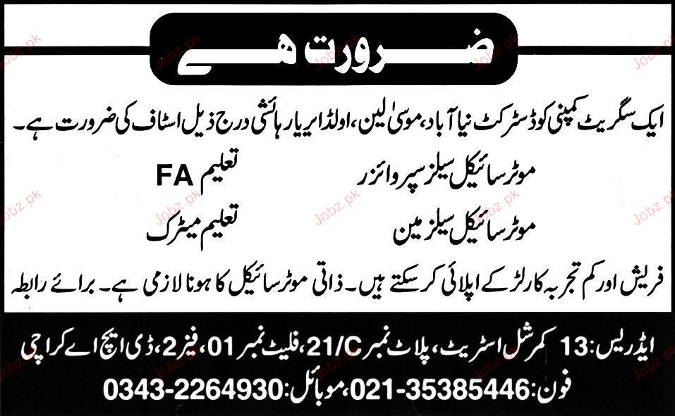 Apply as per details in job advertisement. Login to view further details of how to apply via https://www.jobz.pk online.