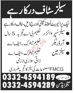 Sales Supervisor, Order Booker And Salesman Job Opportunity