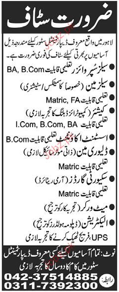 Sales Supervisor, Salesman, Cashiers Job Opportunity