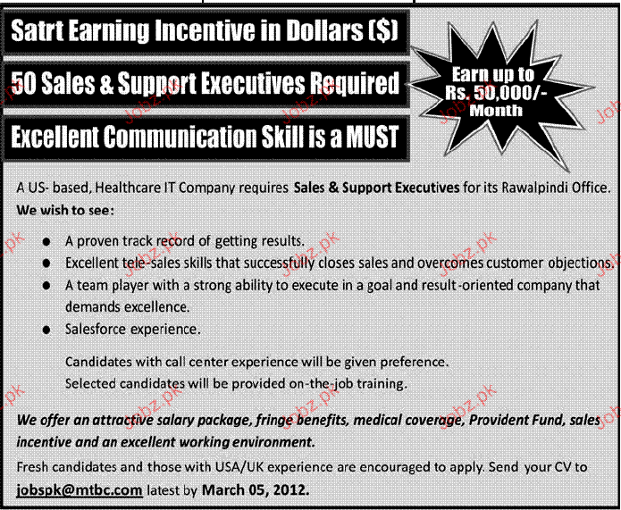 Apply as per details in job advertisement. Login to view further details of how to apply via https://www.jobz.pk online.