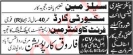Farooq Corporation Rawalpindi, rawalpindi Punjab Pakistan invites applications from eligible candidates for the post of security guard, salesman, front counter man and receptionist as per advertisement of May 19, 2024 published in daily Jang Newspaper. Bachelor, Middle, Intermediate and Matric etc. educational qualification will be preferred.