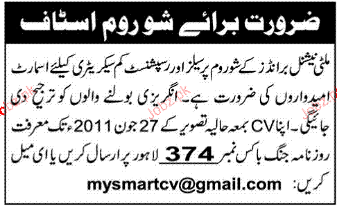 Salesman And Receptionist Cum Secretary Job Opportunity