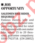 Apply as per details in job advertisement. Login to view further details of how to apply via https://www.jobz.pk online.