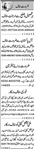 Private Company Gulberg 3 Lahore, faisalabad Punjab Pakistan invites applications from eligible candidates for the post of call center agent, salesman, female manager, security guard, office boy, call operator, clerk, subedar, manager, security staff, havaldar, naib subedar, naik, computer call operator, accountant, subedar major and supervisor as per advertisement of April 11, 2025 published in daily Dunya Newspaper. Persons with Middle, BA, B.com, Matric, Bachelor and Intermediate etc. education can apply.