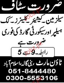 Salesman, Cashiers, Cleaners, Cook, Helpers Job Opportunity