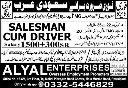 Alyal Enterprises jobs advertisement dated about 8 August 2023 in daily Express Newspaper invites application for the vacant post of driver, salesman, htv driver and ltv driver in Riyadh, dammam Saudi Arabia. Intermediate and Matric etc. educational qualification will be preferred.