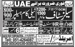 Field professional and talented personnel for the posts of Salesman, Telecom Helper, HR Manager, HR Assistant, Accountant Assistant, Admin Controller, Finance Manager & Driver wanted for a leading construction company in UAE. The interested personnel contact urgently.