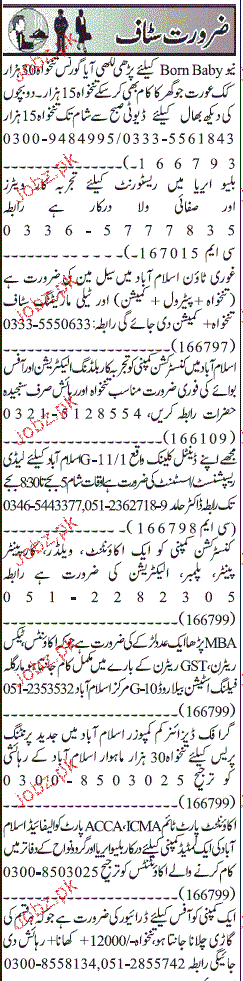 Salesman, House Maid, Receptionist, Accountant Wanted