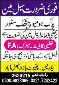 Pak Homeopathic Store is looking for candidates for following posts as per job advertisement published in daily Express Newspaper of July 27, 2025 for location Chinoit Bazar Faisalabad, faisalabad Punjab Pakistan: