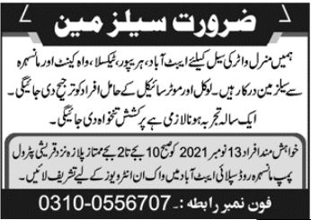 Salesman Jobs 2021 in Mineral Water Company Abbottabad
