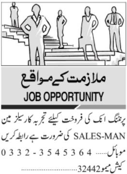 Salesman Jobs 2024 In Printing Ink Company Karachi