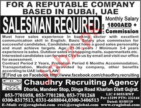 Latest Chaudhry Recruiting Agency Sales Posts Dubai 2025