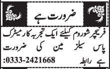 Apply at Furniture Show Room latest Classifieds jobs in Sales and departments before closing date which is around April 15, 2022 or as per closing date in newspaper ad. Read complete ad online to know how to apply on latest Furniture Show Room job opportunities.