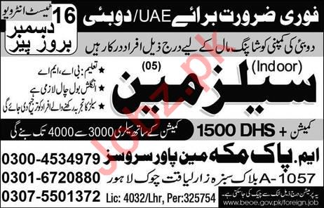 Latest M Pak Makkah Manpower Services Sales Posts Dubai 2025