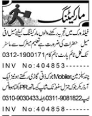 Marketing Company is looking for candidates for following posts as per job advertisement published in daily Aaj Newspaper of February 17, 2022 for location Peshawar Khyber Pakhtunkhwa KPK Pakistan: