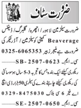 Latest Sales jobs and others Classifieds jobs in Beverage Company closing date is around August 2, 2025, see exact from ad. Read complete ad online to know how to apply on latest Beverage Company job opportunities.
