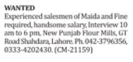 Apply as per details in job advertisement. Login to view further details of how to apply via https://www.jobz.pk online.