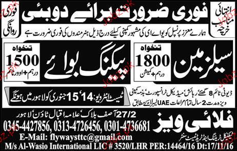Salesmen and Packing Boys Job Opportunity