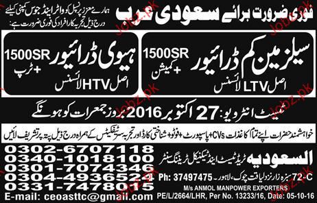 Salesmen Cum Drivers and Heavy Drivers Job Opportunity