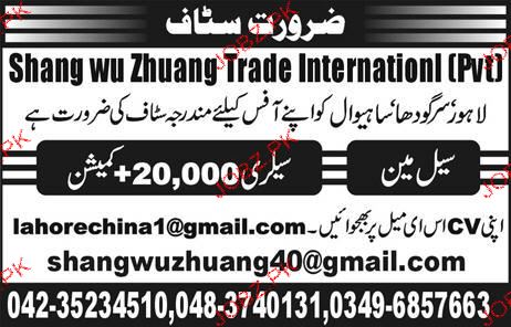 Latest Shang Wu Zhuang International Trading Pvt Ltd Sales Posts Lahore 2025