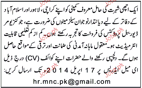 Apply as per details in job advertisement. Login to view further details of how to apply via https://www.jobz.pk online.