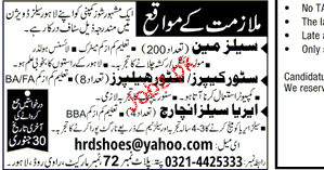 Salesmen, Store Keepers and Area Sales Incharge Wanted