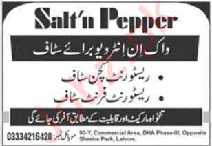 Saltn Pepper Restaurant jobs advertisement dated about 15 May 2022 in daily Jang Newspaper invites application for the vacant post of restaurant kitchen staff and restaurant front staff in Lahore, lahore Punjab Pakistan. Candidates with Master, Matric, Intermediate and Bachelor etc. educational background will be preferred.