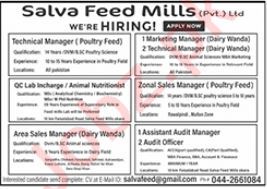 Salva Feed Mills jobs advertisement dated about 4 June 2023 in daily Jang Newspaper invites application for the vacant post of zonal sales manager, technical manager, audit officer, marketing manager, area sales manager, assistant audit manager and lab incharge in Lahore, lahore Punjab Pakistan. Candidates with Bachelor, Master and MS etc. educational background will be preferred.