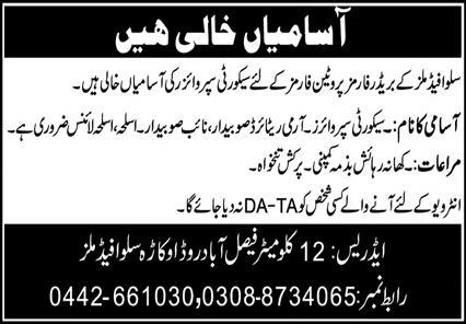 Salva Feed Mills Okara Jobs 2022 for Security Supervisor