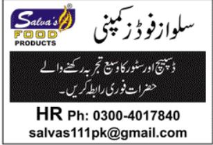 Latest Salva Foods Industry Management Posts Lahore 2025