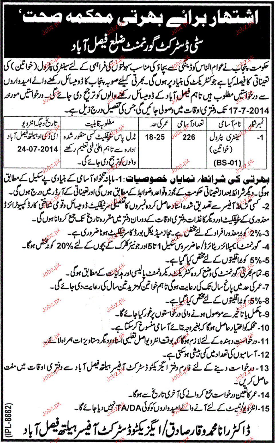 Latest District Government Posts Faisalabad 2025