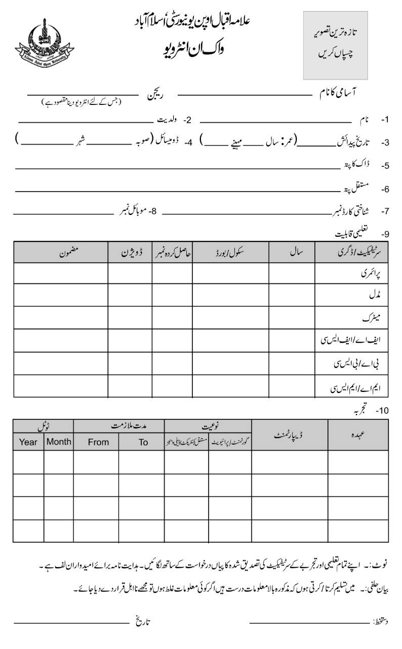 Allama Iqbal Open University AIOU latest Government Labor walk in interview jobs and others can be applied till September 29, 2022 or as per closing date in newspaper ad. Read complete ad online to know how to apply on latest Allama Iqbal Open University AIOU job opportunities.