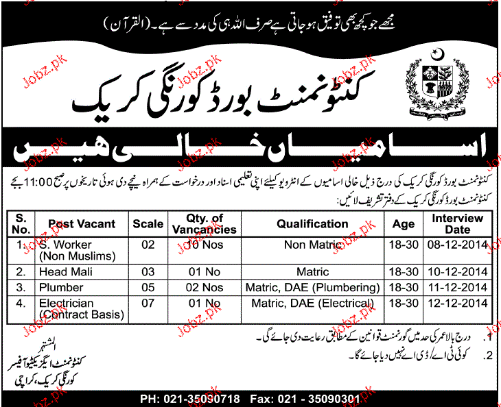 Sanitary Workers, Head Malis, Plumbers Job Opportunity