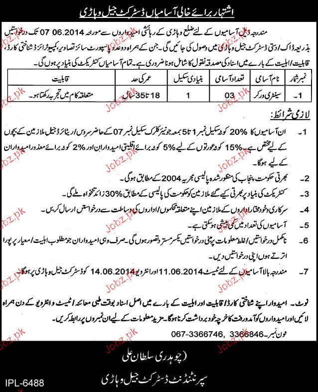 Sanitary Workers Job In District Jail Vehari