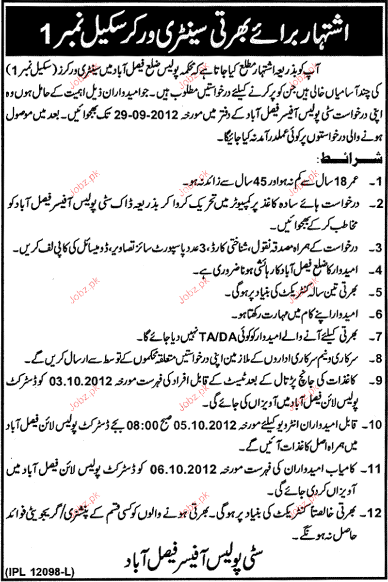 Latest Government Labor Posts Faisalabad 2025