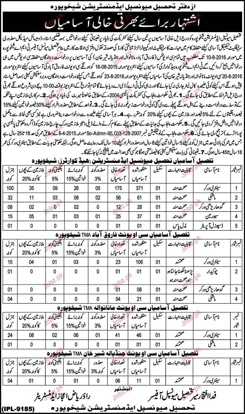 Sanitary Workers, Mashkees, Severmen Job In TMA