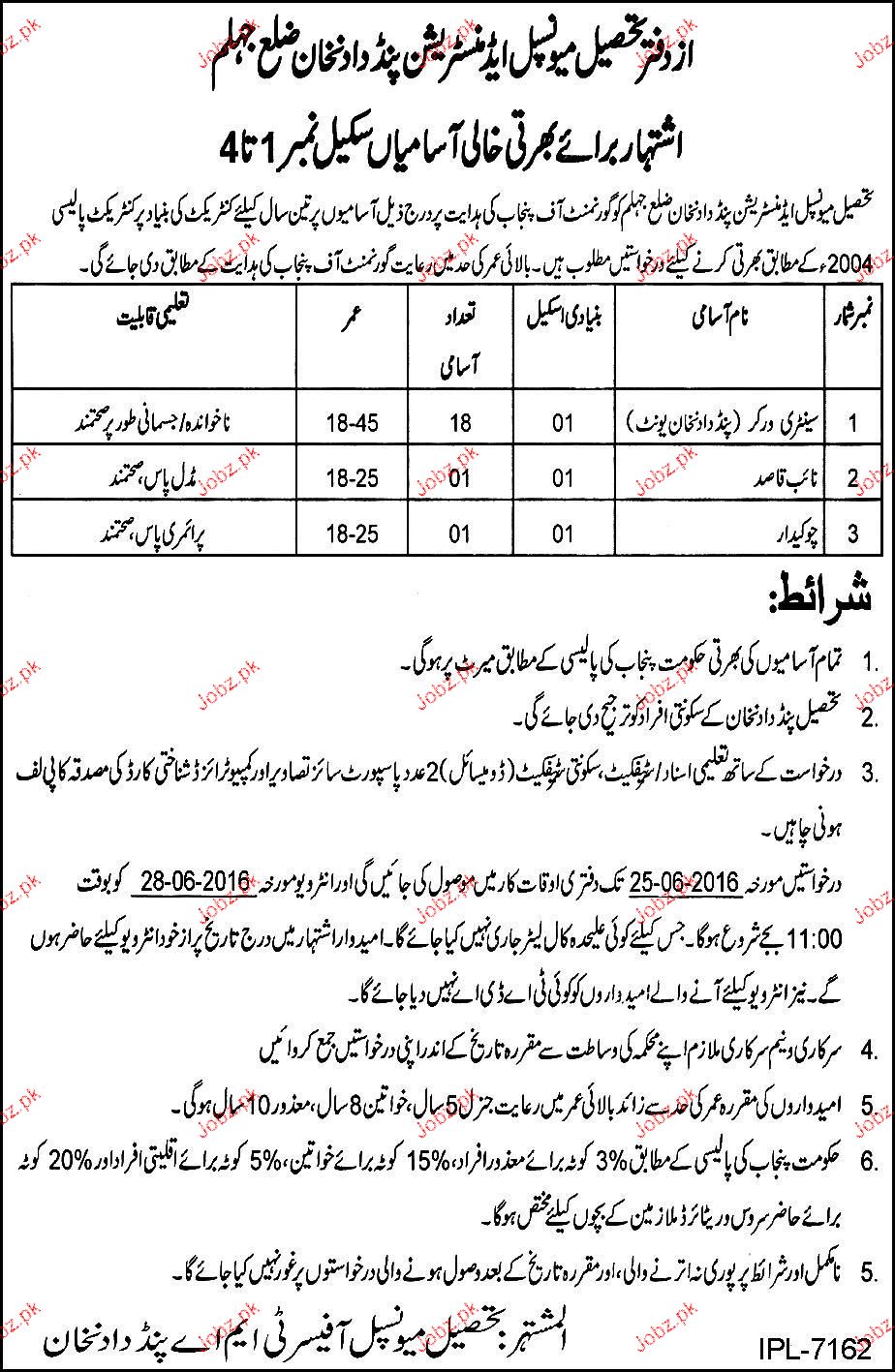 Sanitary Workers, Naib Qasid And Chawkidars Job In TMA