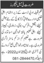 Vacancies in Saqiba Girls College Advertisement June 2022