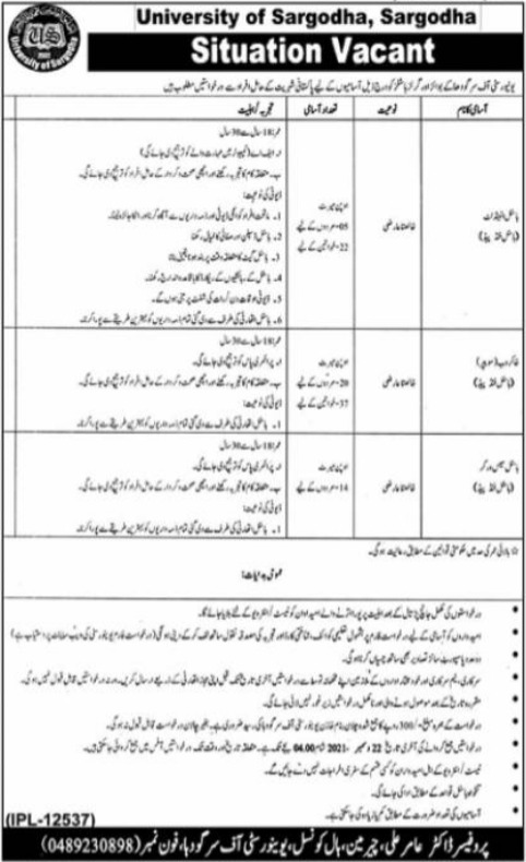 Sargodha University UOS Jobs 2021
