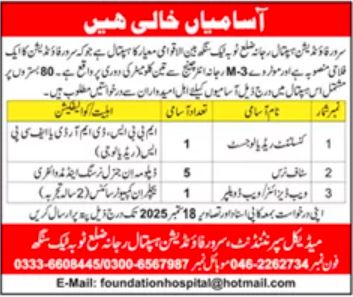 Vacancies in Sarwar Foundation Hospital Rajana Advertisement September 2025